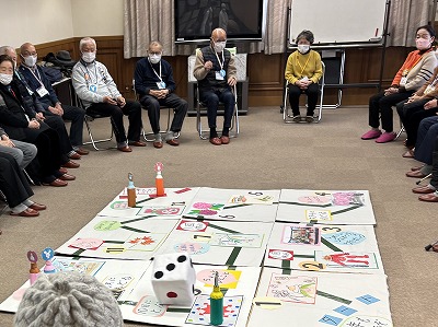 年明け最初のサロンということで、今回は福祉委員さん手作りの“大きな双六”を楽しみました。