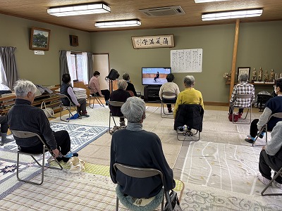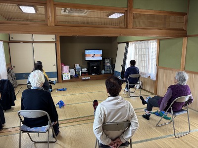 寒い時季で体が縮こまりがちですが、DVDを見ながら「元気ぐんぐん体操」に取り組み、しっかりとストレッチや筋力トレーニングに取り組まれました。