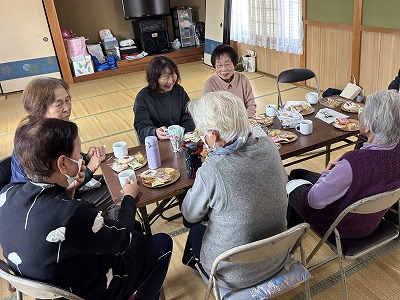 温かいお茶とお菓子を囲んでのおしゃべりタイムでは、ご近所の話題に花が咲きました。